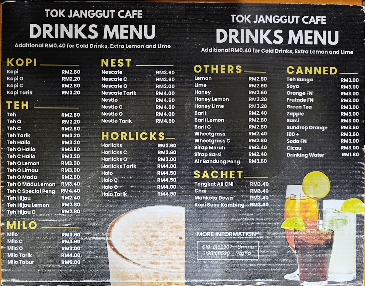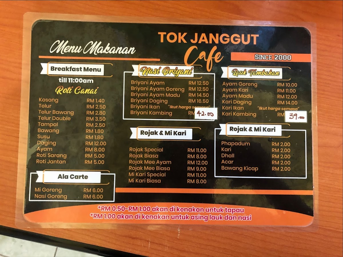 Tok Janggut Cafe, Jalan Tabuan Menu